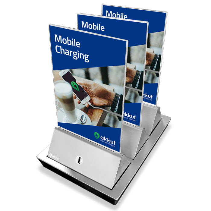 Tischaufsteller MENU TRIO als PowerBank mit Ladestation