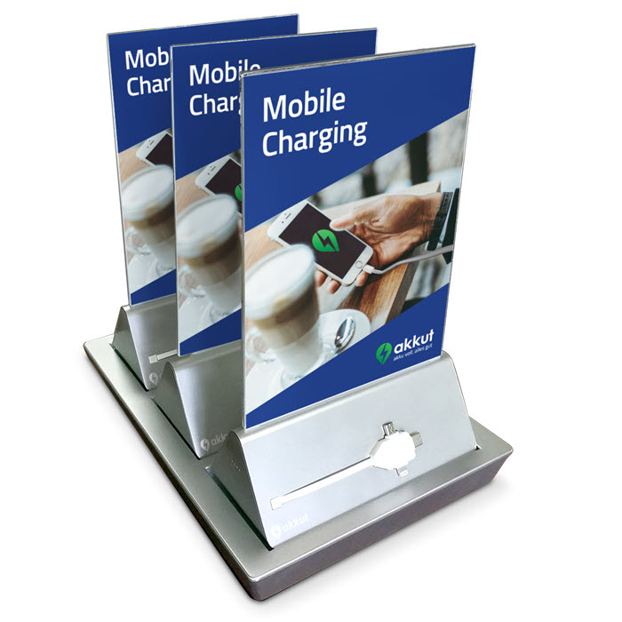 Dadurch erübrigt sich das Ausleihen von separaten Ladegeräten und die Suche nach Steckdosen in Ihrem Lokal!