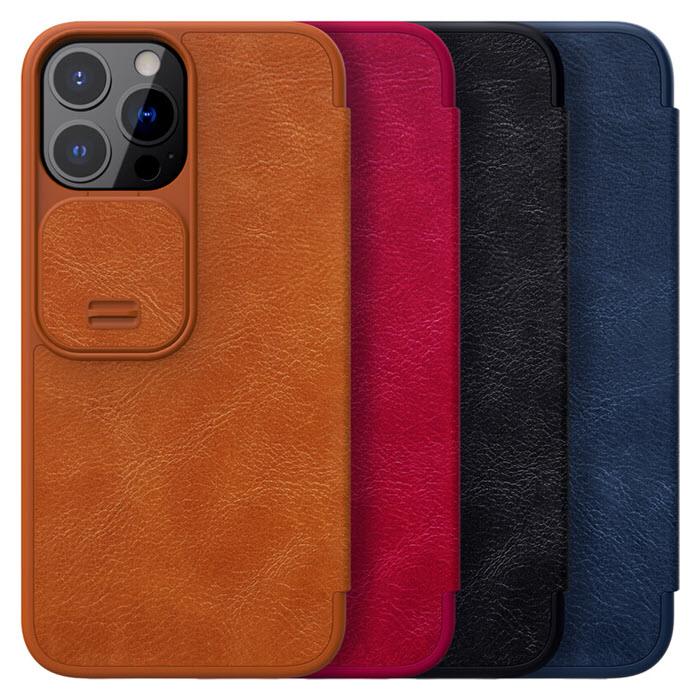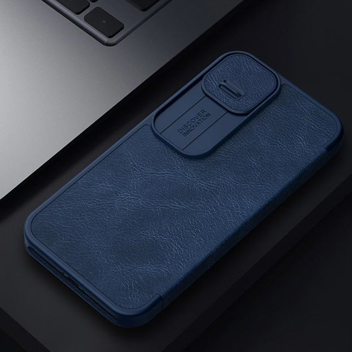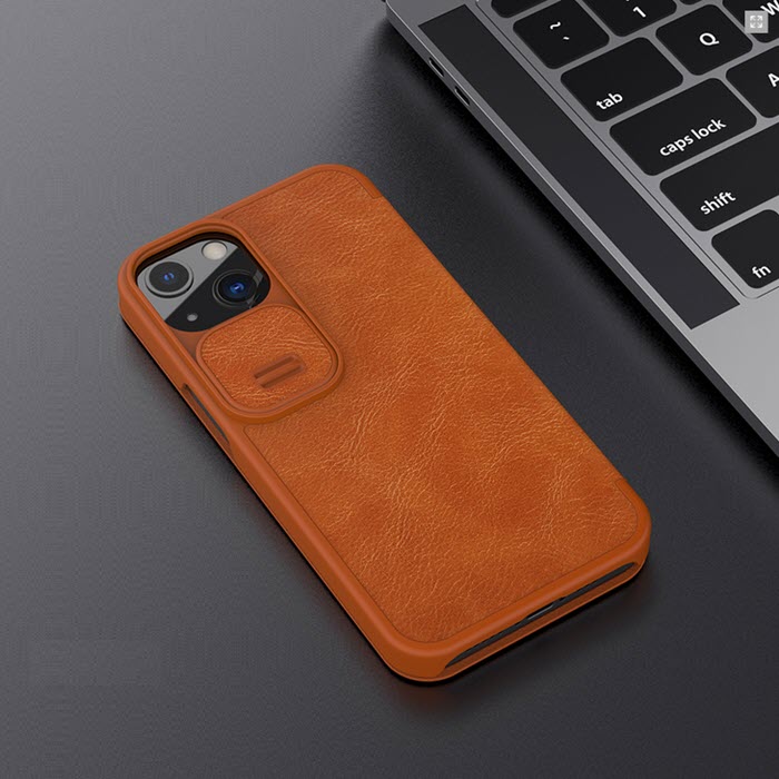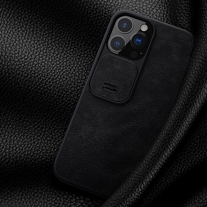 Für iPhones der Serie 13 wurde die Nillkin Qin mit einer verschiebbaren Klappe zum Schutz der Kamera ausgestattet.
