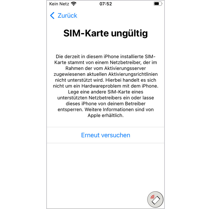 - Nun muss Ihr iPhone mit der neuen Simkarte einmal neu gestartet werden!