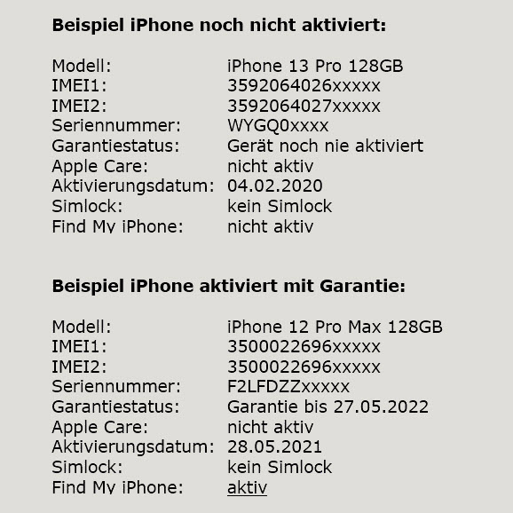 In jedem Fall empfiehlt es sich vor dem Erwerb privater Geräte die IMEI oder Seriennummer prüfen zu lassen!