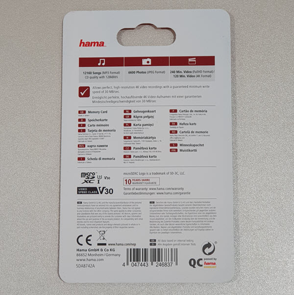 hama bietet 10 Jahre Garantie auf diese Speicherkarte!Optimal um den Speicherplatz Ihres Smartphones aufzurüsten und den internen Speicher zu entlasten.