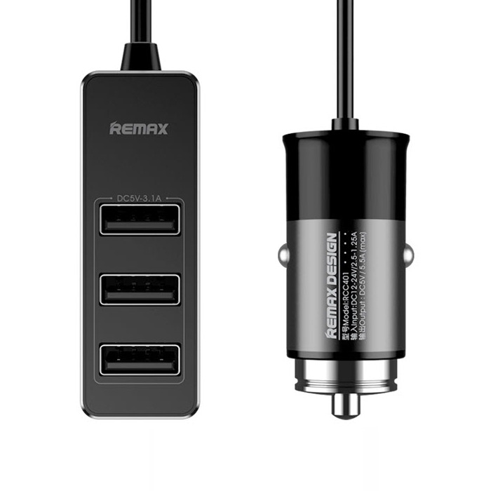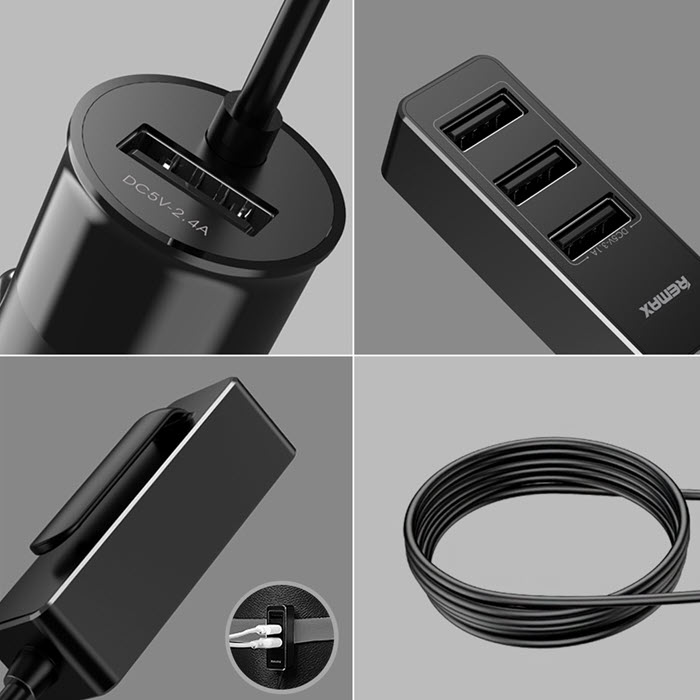 KFZ Auto Ladegerät 3-fach USB Verlängerung für die Rücksitzbank REMAX