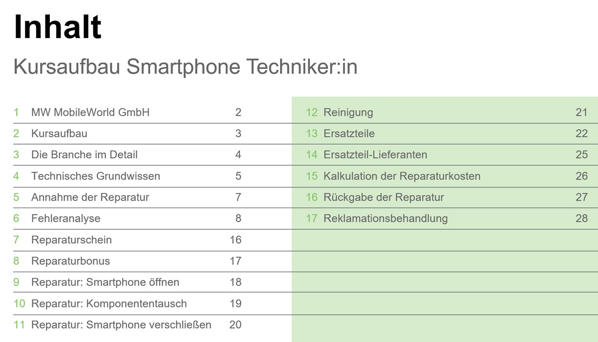 Kursaufbau zum Smartphone Techniker