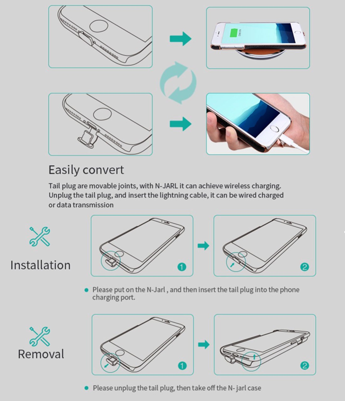 iPhone 7 Plus stecken und anschließen. Ab diesem Zeitpunkt können Sie Ihr Gerät mit allen Qi-Ladestationen aufladen, kabellos und unkompliziert. Egal ob im Büro, im Auto oder am Nachtkästchen, wir haben die Lösung für jede Situation. Mit der