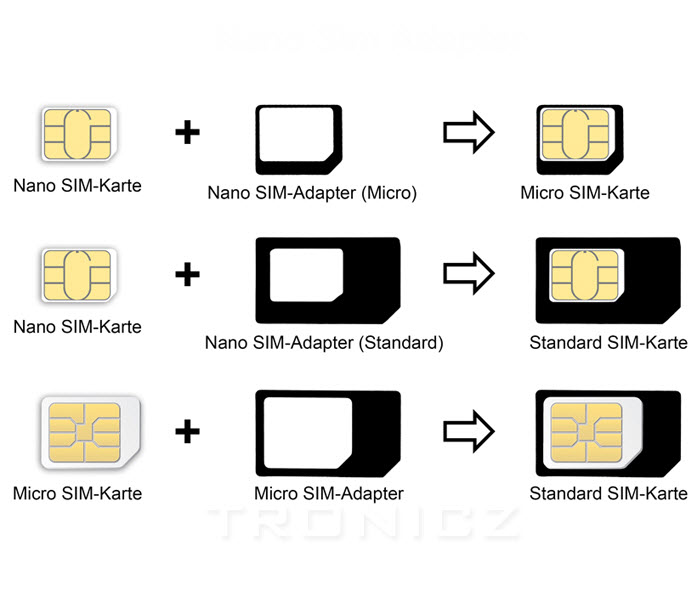 Adapter für Nano SIM-Karten, um diese auch in anderen-Kartenslots wie Micro-SIM und Standard-SIM verwenden zu können!Auch ein Adapter um die Micro-SIM zur normalen SIM zu vergrößern ist dabei!